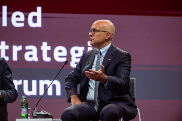 Вучевић је навео да је у разговору на панелу на коме је учествовао на Бледском стратешком форуму доминирала тема сукоба у Украјини и односа према Русији, сукоба у Гази и односа Израела и Палестине.
