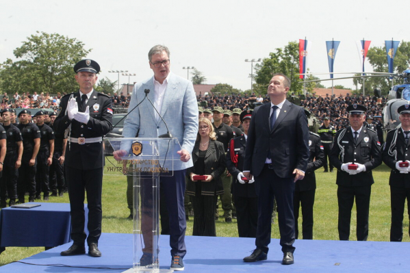 Председник Вучић рекао је да је пред Европом и светом тежак период и да је важно да припадници полиције обезбеде сваки педаљ Србије како би сваки град и село били сигурни, а сви грађани Србије безбедни.