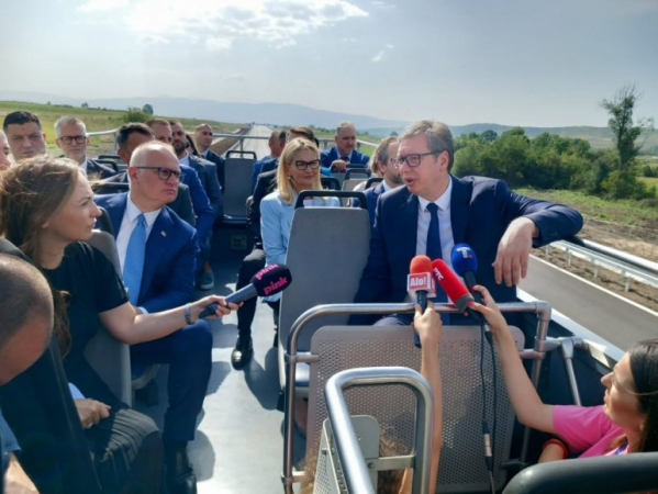"Ја мислим да је то јако важно, да будемо спојени са нашом Грачаницом, али и са Приштином, Тираном, Драчем. То нам олакшава посао и напредак, увоз и извоз робе и услуга", рекао је председник Вучић.
