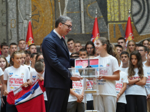 Председник Републике Србије Александар Вучић примио је младе спортисте са Косова и Метохије, из Републике Српске и дијаспоре у "Палати Србија" и поручио им да сањају велике снове јер, како је рекао, само тако могу да остваре велике ствари.